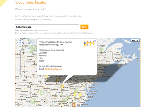 A drupal 7 multilingual site that captures users responses to questions. The site also uses a google map to display the locations of the clinics within the trial.