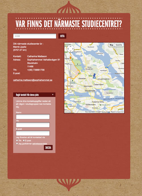 This is a multilingual parallax scrolling Drupal 7 site. There is a site finder module, which returns the nearest study centre for the postcode entered, and places a pin on a google map for that location.