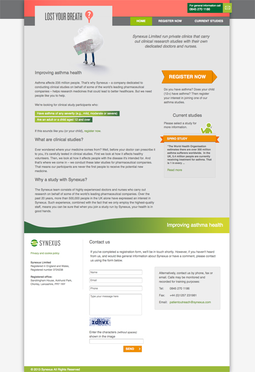 This is a Drupal 7 responsive and multilingual site for improving asthma health. The registration and health profile forms uses JQuery ajax instead of the Drupal Form API ajax to capture the data, which is validated along the way. The current studies page detects for geolocation, which will then order the study centres by location. If geolocation is not available then the ip address is detected and used to order the studies. This project also required a customised module to export the data captured as a CSV file.
